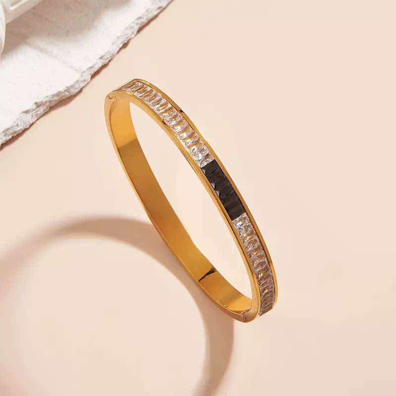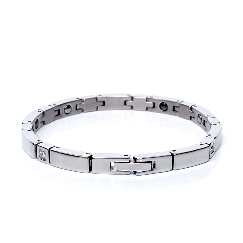 টাইটানিয়াম ইস্পাত কালো & হোয়াইট স্কয়ার ডায়মন্ড ব্রেসলেট
