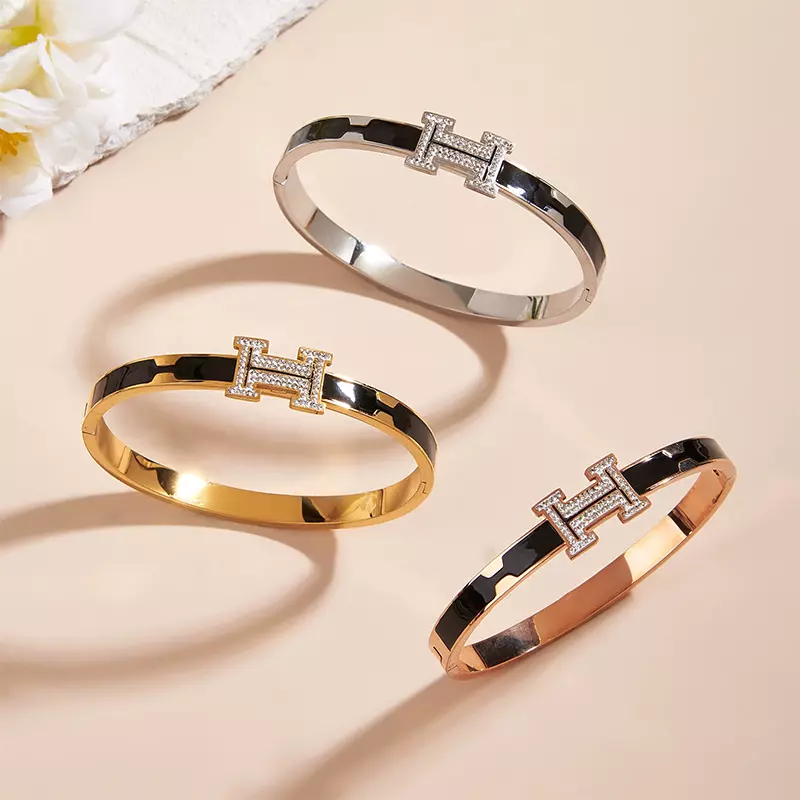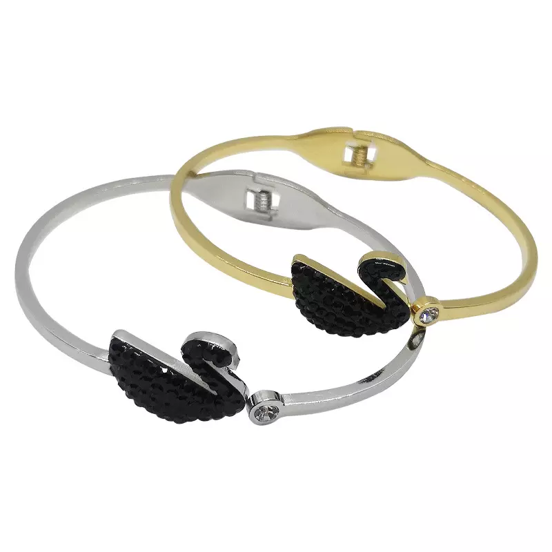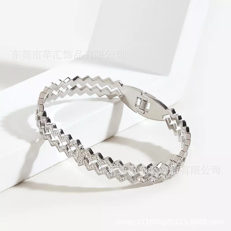 ইস্পাত-গ্রে ওয়েভ-প্যাটার্ন ফুল ডায়মন্ড ব্রেসলেট